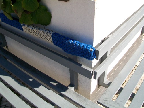 Assim à primeira vista não estou a ver o objectivo de revestir árvores e mobiliário urbano com estas coisas. Deve ser uma espécie de arte. Ou uma mania qualquer. O que é, diga-se, mais ou menos o mesmo.