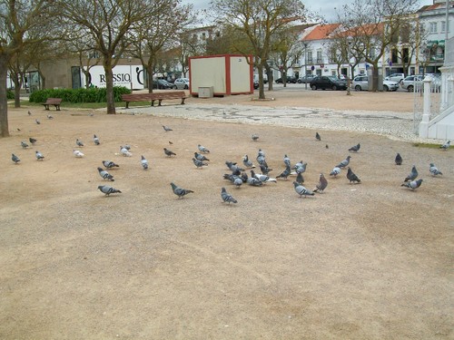 Cá a terrinha, como quase todas as outras sejam grandes ou pequenas, está cheia de pombos. O que não surpreende. Os gajos reproduzem-se como o caraças e, para ajudar à festa, há sempre uns javardões a tratar de os alimentar. Devem-lhes achar muita graça, eles. Ou, coitados, pensam que estão a fazer uma boa acção. Se a isso juntarmos a habitual e tão característica inércia das autoridades que deviam tratar disto e não tratam, temos a javardice perfeita.