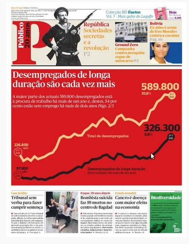 Não sei, nem me interessa grande coisa, quem tem razão nessa polémica que por aí anda acerca do desemprego. Sei apenas que se trata de um drama para quem está nessa situação e que constitui um problema antigo, como se pode constatar nesta capa do “Público” de 18 de Agosto de 2010, para o qual não existem soluções milagrosas.