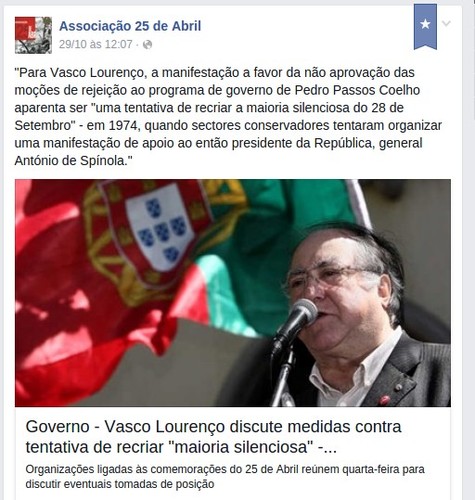 Bastou um grupo de três indivíduos, cada um por si, ter a ideia de sugerir a realização de uma manifestação em frente à Assembleia da República contra um eventual governo de esquerda, para deixar os comunistas e outros esquerdalhos à beira de um ataque de nervos. Pelos vistos a rua é da esquerda. O direito ao protesto é da esquerda. O direito à liberdade de expressão só pode ser exercido se for para exprimir opiniões favoráveis à esquerda. Apenas a esquerda se pode manifestar nas ruas. Tem o exclusivo, devem achar as criaturas. Era assim em setenta e cinco. Pelos vistos querem que assim continue em dois mil e quinze. E isto ainda sem estarem no governo...
