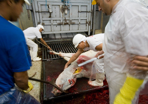 Por acaso conheço um matadouro e lá os animais não sofriam. Levavam um tiro na nuca e garantia-se que o animal estava efetivamente morto antes de se começar o serviço.