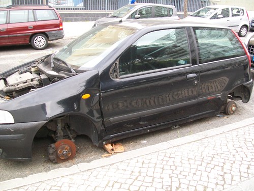 É um carro muito engraçado. Não tem rodas e já não tem quase nada. Mas, ainda assim, continua ali. Sem se saber ao certo porquê.